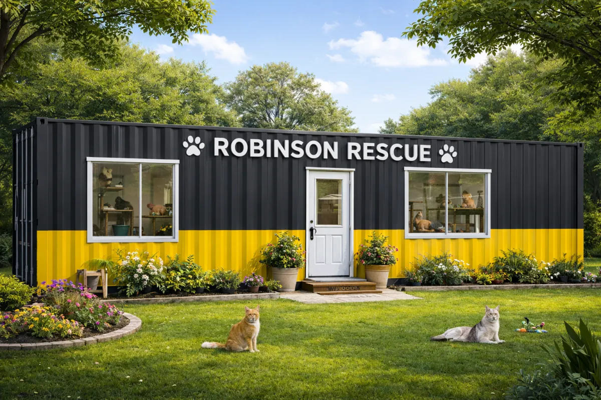 Robinson Rescue 1 Corp (501(c)(3)) is expanding to meet urgent animal rescue needs. This container home will create a safe, clean, and structured environment where feral and domestic cats can live comfortably while receiving daily care, food, medical attention, and preparation for adoption.